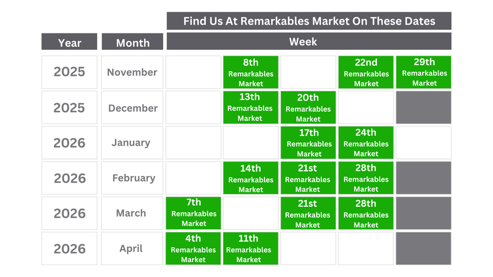 Find us at the Saturday, Remarkables Market on these dates:
